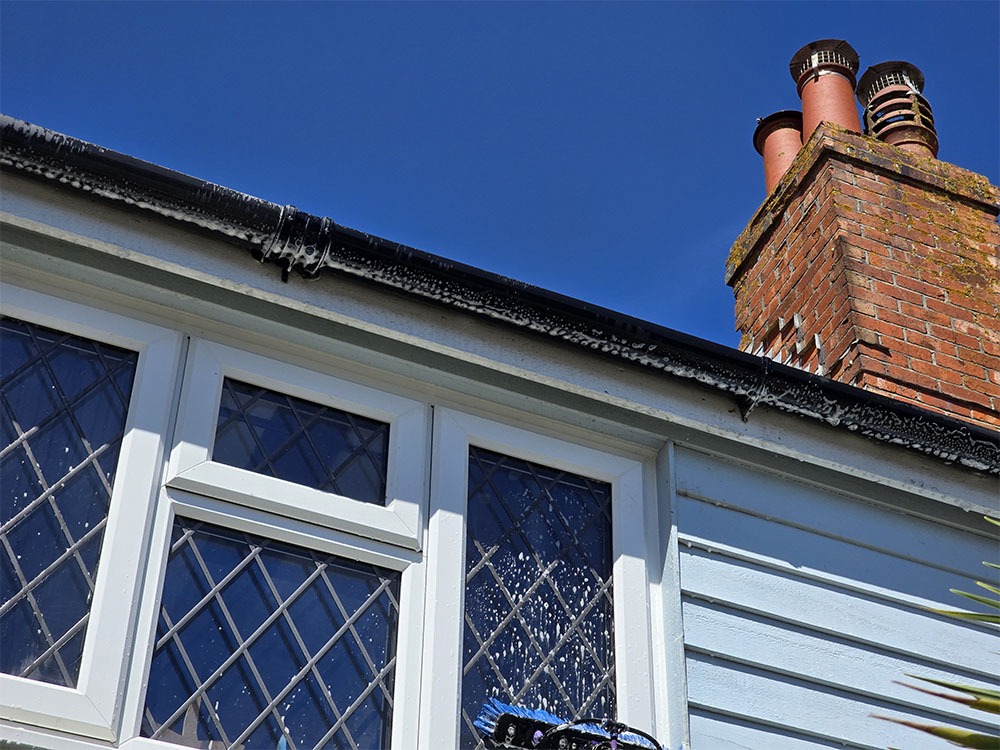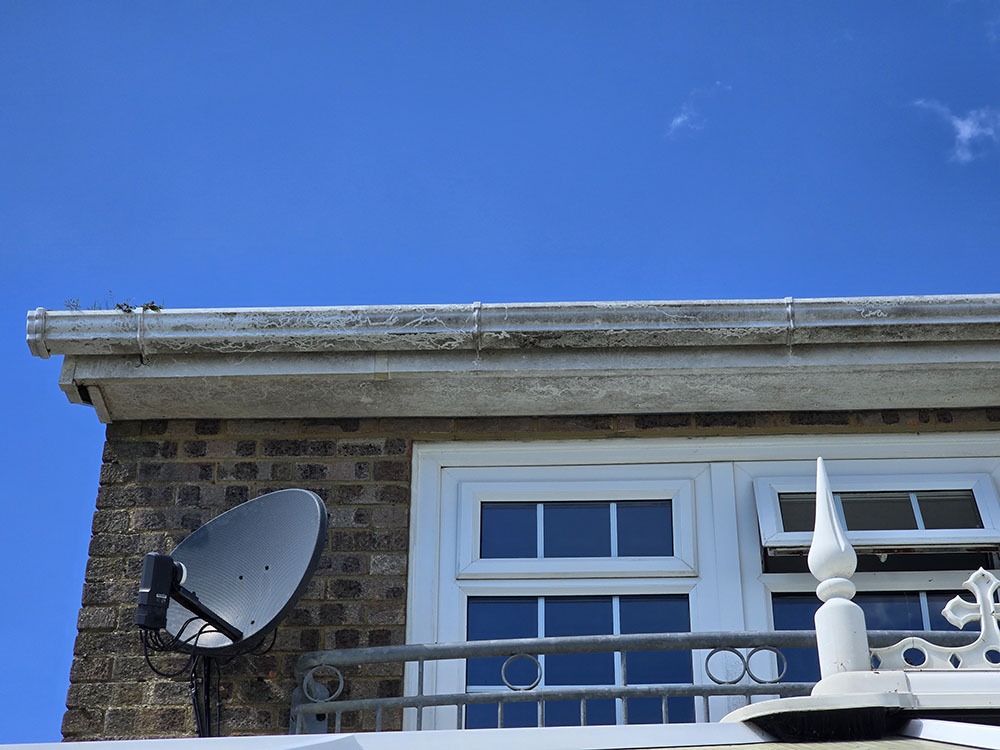 Fascia boards support your gutters, so keeping them clean helps prevent overflow stains, rot, or moss buildup from gutter debris. It also ensures water drains away correctly and doesn’t damage the roof edges.